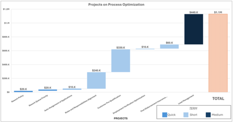 The bank’s consumer lending operation was under mounting pressure as customer expectations for speed and digital convenience rose. Internally, the lending process relied heavily on manual, paper-based workflows and frequent human intervention, which made approvals slow, costly, and error-prone. High rework rates, unclear ownership, and inefficient use of staff capacity increased operating expenses and lengthened customer wait times. These issues eroded satisfaction, threatened retention, and constrained the bank’s ability to capture additional lending revenue. Recognizing that incremental fixes would not be sufficient, the bank sought an efficiency-led digital transformation to modernize its lending function.